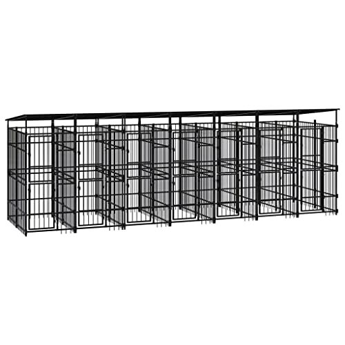 Chenil Extérieur avec Toit pour Chiens Acier 12,9 m²- Chiens