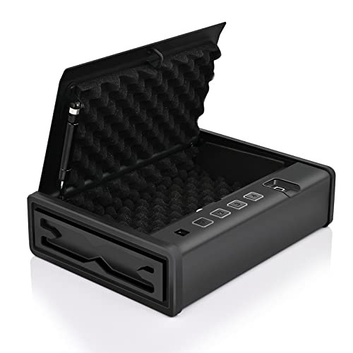 - 【Fiable Pistol Safe】Ce pistolet biométrique sans danger pour pistolet est doté d’un vérin à gaz et d’une lumière LED qui garantissent que le couvercle peut être ouvert silencieusement avec de la lumière. Le système de verrouillage le plus avancé et les accessoires de précision fiables rendent presque impossible de soulever le coffre-fort avec des outils à main, et les piles durables peuvent être utilisées pendant environ 1 à 2 ans en mode veille.