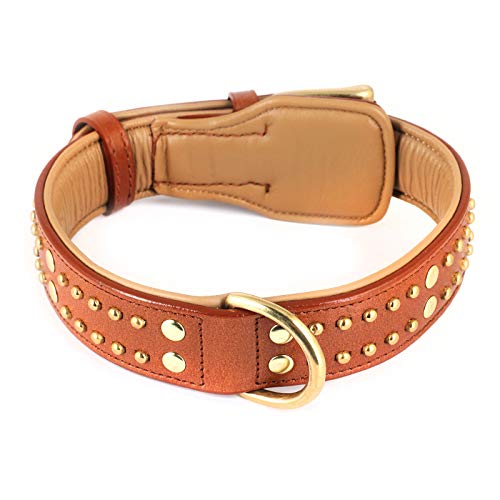 Monkimau Collier pour chien en cuir véritable rembourré avec rivets réglables L 41-50 cm
