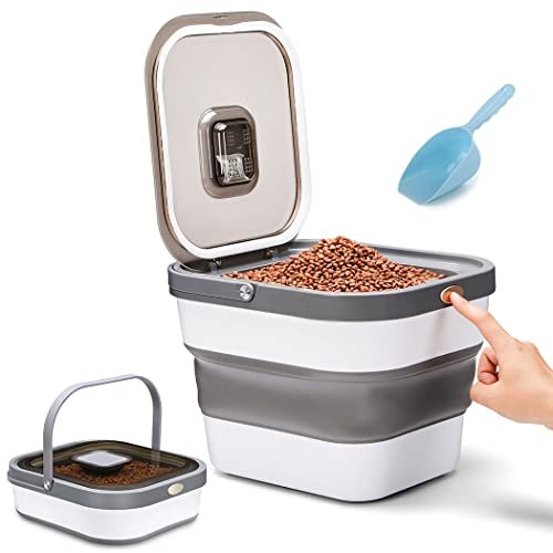 - 【Grande capacité】Cette boite croquette chat se déplie pour atteindre une hauteur de 28,5 x 33,5 x 24,5 cm et peut contenir jusqu’à 13 L / 6,8 kg de nourriture ou de snacks pour animaux de compagnie.