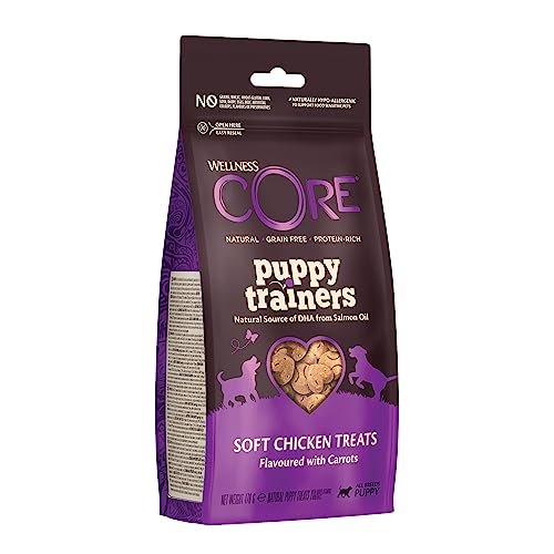 - VIANDE FRAÎCHE COMME INGRÉDIENT PRINCIPAL : Nos WELLNESS CORE Puppy Trainers contiennent du poulet frais comme ingrédient principal. Ces friandises sont également naturellement hypoallergéniques, ce qui les rend parfaites pour tous les chiots. Une friandise saine après un bon entraînement !
