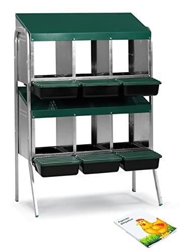 - ✅ PONDOIR ECO AVEC 6 COMPARTIMENTS : pondoir sur pieds pour approximativement 30 poules. Les nids se trouvent à deux hauteurs, avec 3 nichoirs par hauteur. Apporte l’intimité nécessaire aux poules et grâce aux collecteurs d’œufs, ceux-ci restent propres et ne peuvent être mangés par les poules.