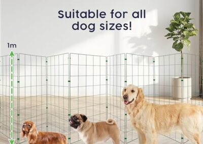 - SÉCURITÉ MAXIMALE À CHAQUE MOMENT: Garde vos chiens sécurisés et offre une solution parfaite comme parc chiot interieur, parc lapin interieur, enclos chien exterieur et parc animaux. Plus de soucis lorsque vos amis à quatre pattes jouent dehors, cette clôture garantit qu’ils restent selon vos besoins, tout en ayant suffisamment d’espace pour bouger librement.