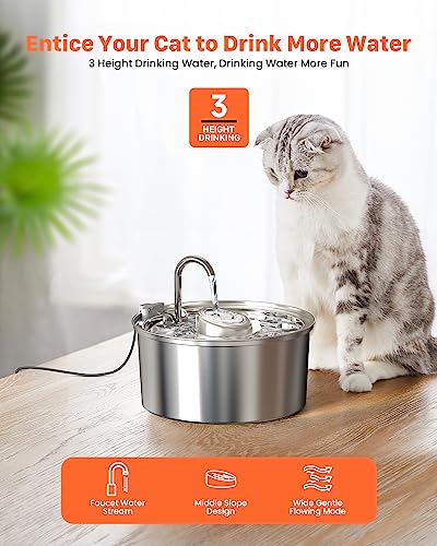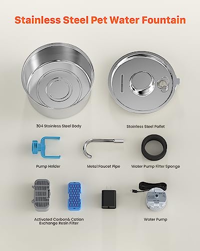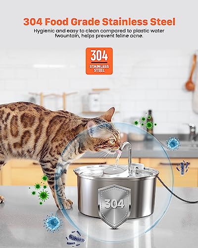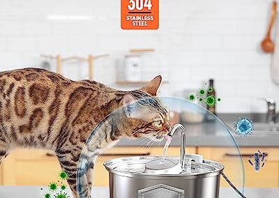 - 【Amélioration de la sécurité des animaux de compagnie】Cette fontaine à eau pour chat est fabriquée en acier inoxydable SUS 304. L’acier inoxydable 304 est plus sain pour l’environnement et plus durable. Il peut rendre votre chat plus sain que les distributeurs d’eau en plastique de qualité inférieure.