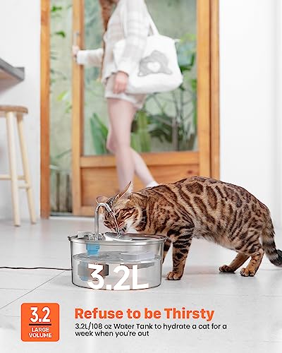 - 【Grande capacité améliorée de 3,2 L】 Les chats ont besoin d’absorber entre 0,8 et 1,2 oz de leur propre poids en eau pour rester en bonne santé. Grâce à la nouvelle capacité de 3,2 litres, votre chat n’aura plus à s’inquiéter s’il n’a pas d’eau propre à boire. Cet abreuvoir est idéal pour les chiens de petite taille et tous les chats.