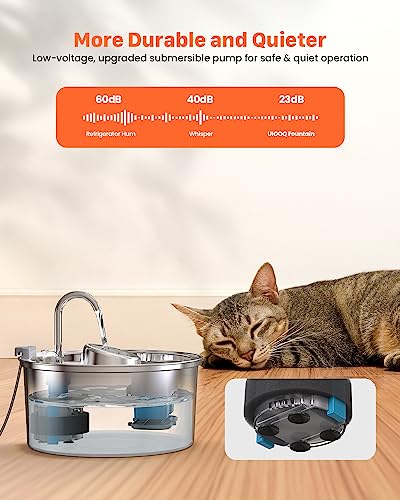 - 【Plus silencieux qu’un murmure】La pompe de ce distributeur d’eau pour chat est super silencieuse lorsqu’elle fonctionne, à peine audible à 23dB. Même si elle est placée à côté du lit, elle n’affectera pas votre sommeil. En même temps, cette pompe à faible consommation est encore plus durable.