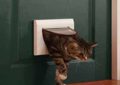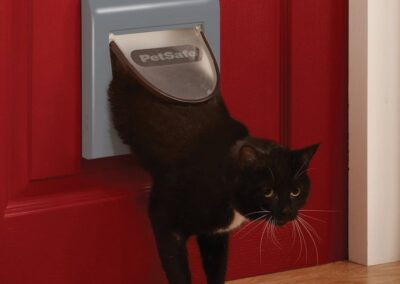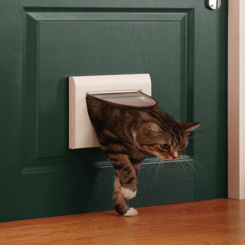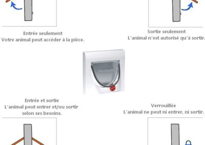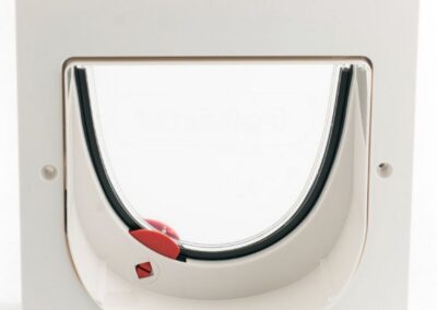 Porte pour chat jusqu’à 7 kg et pour chien jusqu’à 3 kg, avec options de verrouillage. Le verrouillage à quartes positions permet une flexibilité maximale. Réglez la porte en position ouverte, fermée, entrée uniquement ou sortie uniquement. Disponible en blanc avec ou sans tunnel et en gris avec tunnel. Cette porte permet à l’animal d’aller et de venir entre la maison et l’extérieur en totale liberté.