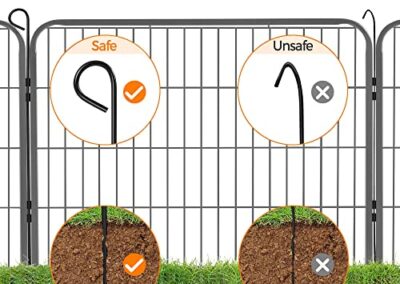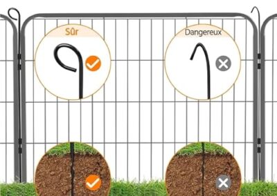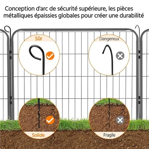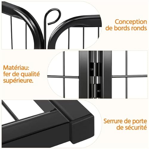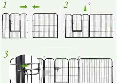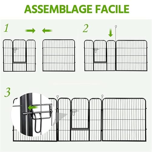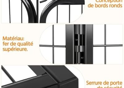 - Pratique: piquets métalliques facilitant la disposition des panneaux; panneaux avec porte à charnière et loquet de porte faciles pour l’entrée et la sortie.