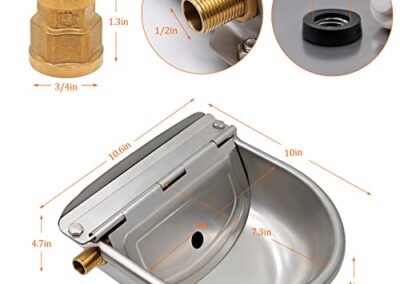 - Design automatique : la vanne à flotteur peut remplir automatiquement l’arrosage avec de l’eau, de sorte que vous n’avez pas besoin de remplir le bol constamment et que le bétail peut accéder à l’eau fraîche quand vous le souhaitez