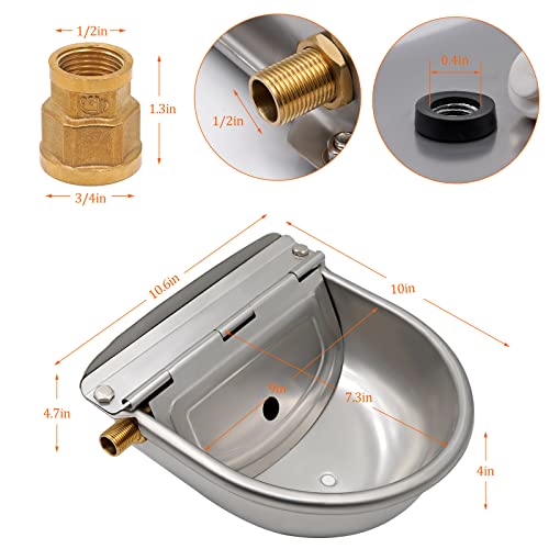 Abreuvoir Automatique en Acier Inoxydable Avec Flotteur de Valve en Laiton, Connecteur en Laiton et Bouchon de Vidange Abreuvoir pour Bétail, Chien, Chèvre, Cochon