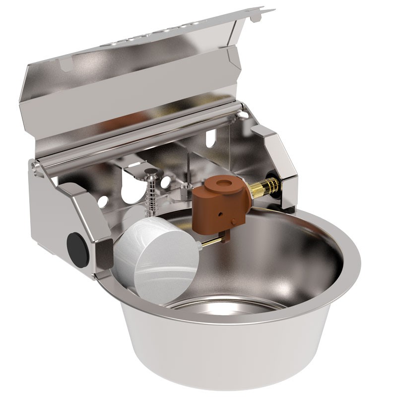 Grâce à sa valve intégrée, le niveau d’eau dans la parabole peut être réglé de manière simple et intuitive. Le matériau utilisé est l’acier inoxydable, ce qui garantit la meilleure qualité d’eau possible et augmente la durabilité de la carotte. L’assiette est facilement amovible, de sorte à pouvoir être nettoyée séparément.