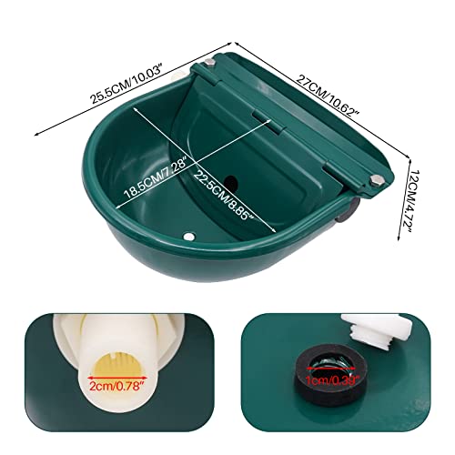 Abreuvoir en Acier Inoxydable avec Valve Flottante de 1/2 pouce et Bouchon de Vidange, Distributeur d’Eau Automatique Vert pour Bovins, Porcs, Moutons, Chiens