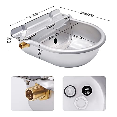 Abreuvoir pour Bétail en Acier Inoxydable Avec Robinet à Flotteur en Laiton Réglable et Bouchon de Vidange, Abreuvoir Automatique pour Chien, Chèvre, Cochon, Mouton, Vache