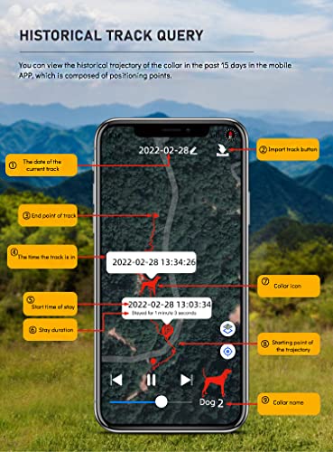 - 【Mise à jour de l’emplacement en temps réel de 2,5 secondes】 Équipé des trois principaux systèmes de positionnement de Beidou, GPS et GLONASS, les utilisateurs peuvent vérifier la distance, la direction, l’altitude et d’autres informations du chien de compagnie grâce à la fonction boussole de l’appareil portable ou du mobile. APPLICATION.