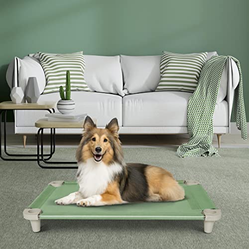 Acrimet Lit surélevé pour Chien, en Tissu en Maille Lavable et Respirant, Cadre en Acier Inoxydable, utilisable en intérieur et en extérieur, (Taille : 40”x 24”) (Couleur Verte) (1 unité)