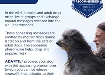 - Elaboré et testé sous contrôle vétérinaire : Adaptil Calm est recommandé par des vétérinaires, éleveurs et éducateurs canins