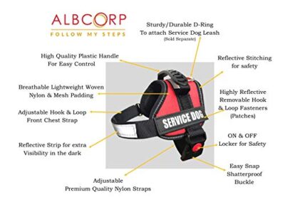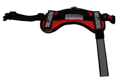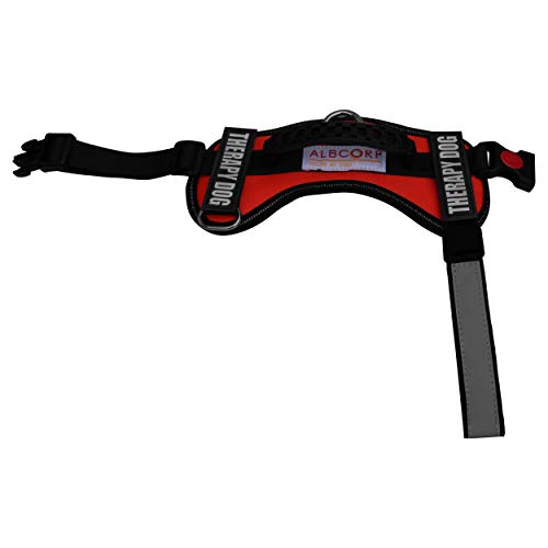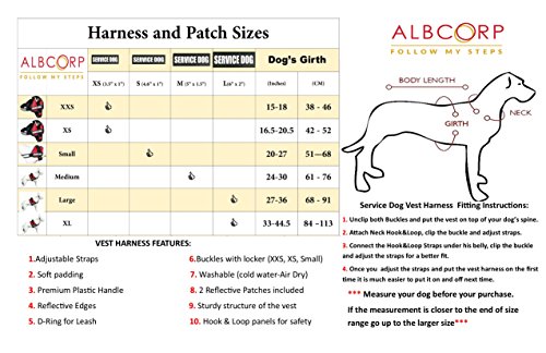 Albcorp Harnais réfléchissant pour chien en polyester tissé et nylon – Veste réglable pour animal de service avec 2 patchs amovibles auto-agrippants – Rouge, XXS