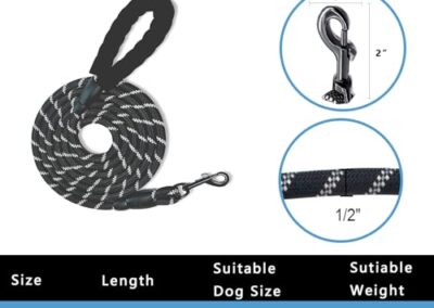 • Mousquetons De Haute Qualité:La laisse chien 3m se termine par un fermoir à encliqueter chromé, il y a un certain poids, il n’est pas fragile, en raison de la largeur de la corde de chien de 1,2 cm, il n’est pas facile d’être arraché lors de la mise en place du fermoir à encliqueter.