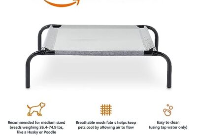 Amazon Basics Chien Lit surélevé et rafraîchissant pour animaux de compagnie -Taille moyenne, Textile, Gris, L 110 x l 65 x H 19 cm