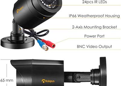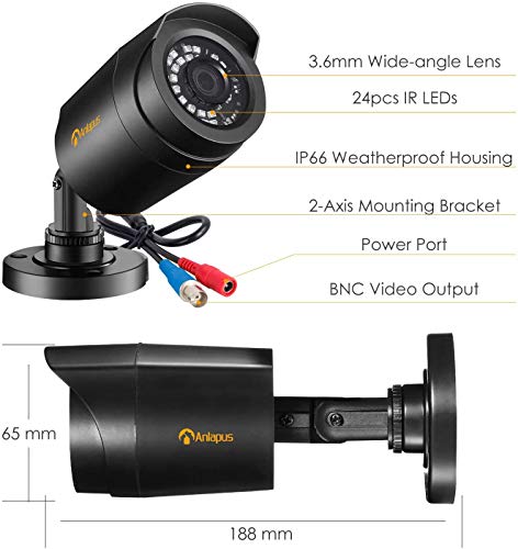 Anlapus 1080P TVI Caméra de Surveillance Extérieure Etanche IP66, 20M Vision Nocturne, Objectif 3,6mm, Couleur Noire, pour DVR de type HD-TVI