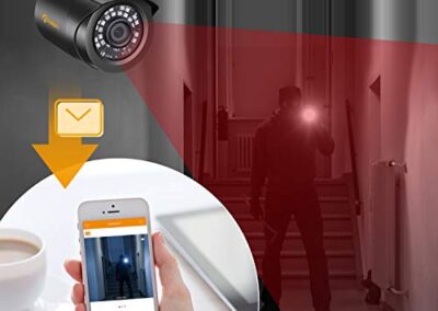 - La vision nocturne de 24 mètres est rendue possible grâce aux 24 LED IR-Cut intégrées. Vous pourrez ainsi voir des images claires en noir et blanc et avoir une vue détaillée de tout ce qui se passe dans la nuit.