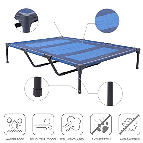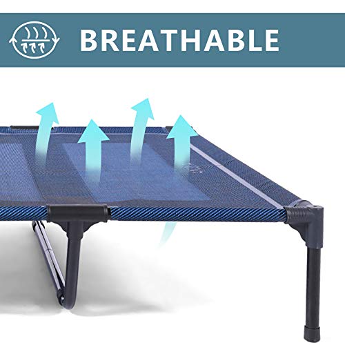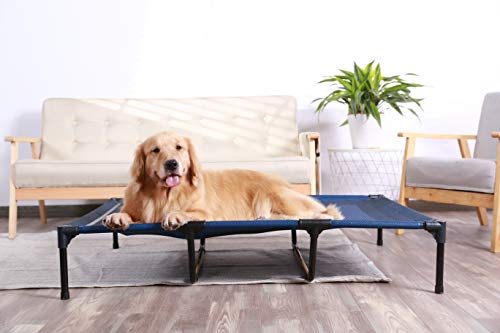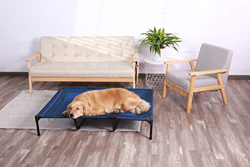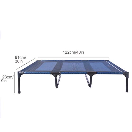 ANWA Lit Surélevé pour Chien,Lit Chien de Camp sur Pieds Pliable Intérieur Extérieur,Bleu Lit en Tissu Teslin XL(124 * 88 * 20cm)