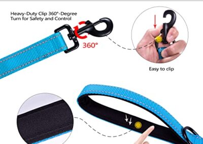 - Fermoir rotatif à 360° : le fermoir pivotant empêche la laisse de se tordre et le chien de s’emmêler. Le fermoir en métal robuste permet à nos laisses d’entraînement de durer plus longtemps que la plupart des laisses. Composants haut de gamme pour une résistance maximale