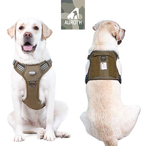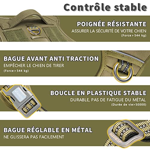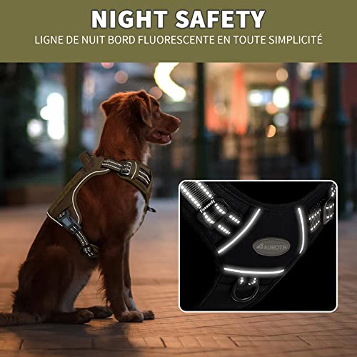AUROTH Harnais de Chien Anti Traction, Harnais Tactique Chien Respirant Réglable Facile à Mettre pour Moyen Grand Chien, Gilet Durable Réfléchissant, Matériel Militaire Taille L, Brun Vert