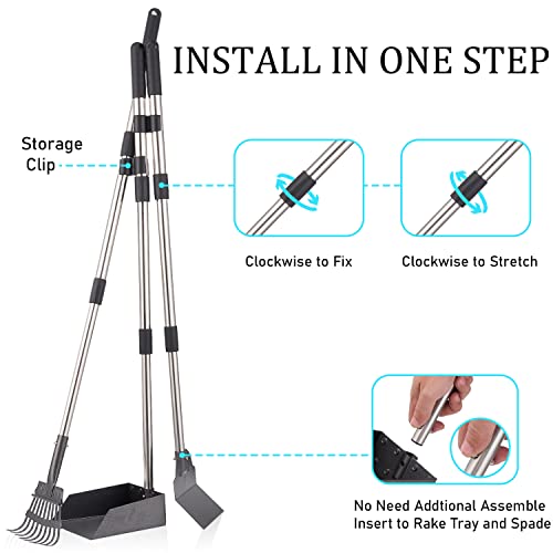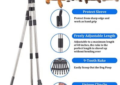 - 🐕【Facile à Assembler et à Ranger】Il n’y a pas d’outils supplémentaires requis ni de processus compliqué pour préparer le scooper à caca pour chien, connectez simplement le plateau, le râteau et la pelle à leurs poignées respectives et étendez-les à une longueur confortable afin de rapidement et ramasser les déchets de manière hygiénique. Vous pouvez les attacher ensemble et les poser sur le sol ou les accrocher à des crochets.