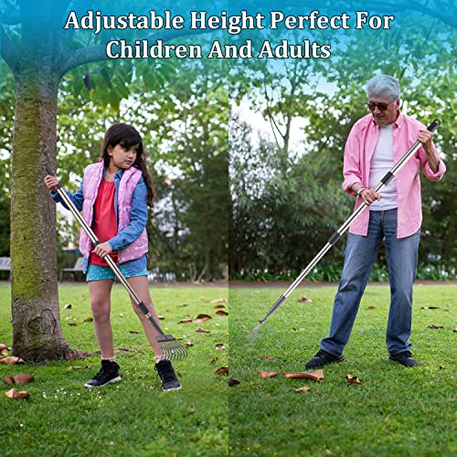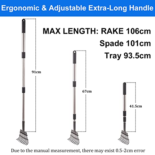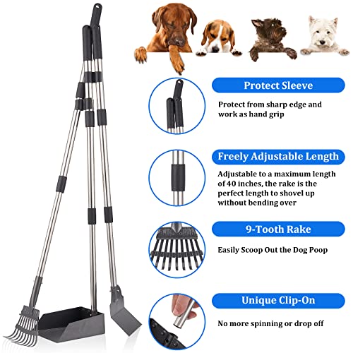 Bamda Pelles Ramasse-Crottes pour Chien, 106 cm Réglable Télescopique Longue Manche Plateau et Râteau en Métal pour Grande Moyen et Petit Chiens, Ppelouses, Herbe, Saleté, Gravier – Kit 2 Pack