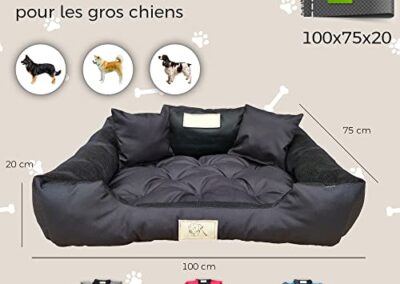 - ERGONOMIQUE – Le lit pour chien de très grands chiens a une forme adaptée à la position anatomique du chien, ce qui assure un sommeil paisible. Il a également un effet bénéfique sur l’état de la colonne vertébrale de votre chien.