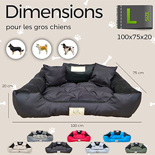 beeco STORE Lit pour Grands Chiens | Nom du Chien | Noir, L-100×75 | Coussin imperméable | Canapé adapté au Lavage | Chenil d’intérieur | Made in EU