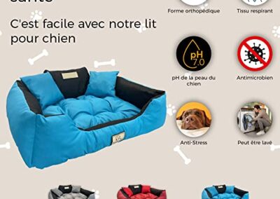 - RESPIRANT : grâce au tissu spécial à partir duquel le lit pour chien de taille moyenne est cousu, votre chien ne sera pas frotté par temps chaud. Ainsi, le lit pour chien ne sent pas son odeur.