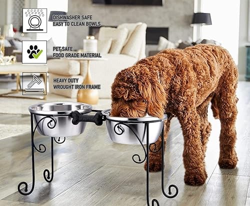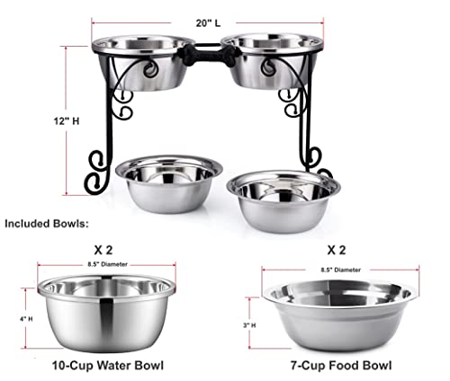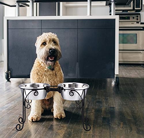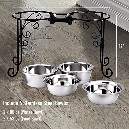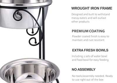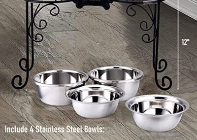 / BestVida Gamelles surélevées pour Chien en Acier Inoxydable avec 4 Bols en Acier Inoxydable, Large