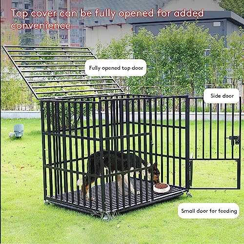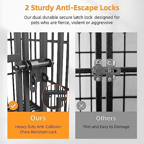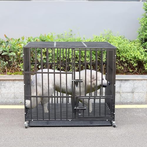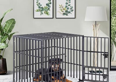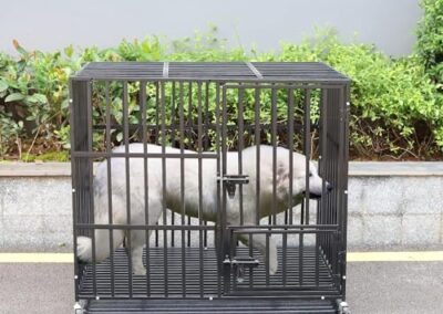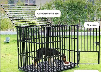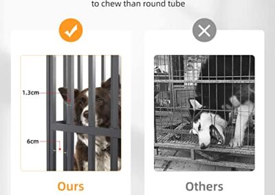 - Cage pour Chien Robuste – Le cadre en fer est composé des tubes carrés épais de 1.5 cm et a une capacité de charge allant jusqu’à 200 kg, plus résistantes aux morsures que les parois en acier tubulaire ou en fil de fer et deux fois plus dur que l’alliage d’aluminium, il s’agit d’une cage a chien conçue pour les grands chiens destructeurs et féroce, le cadre est également traité avec des matériaux résistants à la rouille et à la corrosion, garantissant qu’il est conçu pour durer