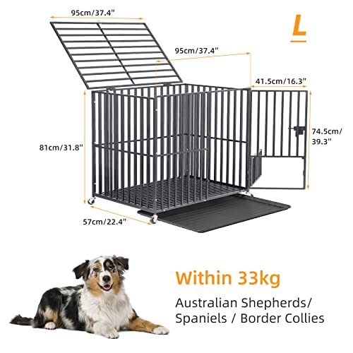 BingoPaw Cage Chien Interieur Solide: Caisse de Transport L sur Roulette Grand Chien Grande Taille – Cages Robuste Extérieur pour Gros Chiens en Métal avec 3 Porte et Plateau Amovible 95x81x57cm