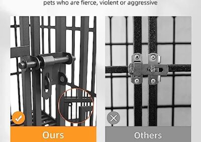- Double Loquets Anti-évasion – Après de nombreux essais, nous avons conçu une serrure de forme unique, les deux loquets anti-évasion empêchent les chiens d’ouvrir la porte en frappant cette cage transport chien, même les chiens les plus rugueux et les plus féroces sont incapables de s’échapper, vous pouvez aller travailler l’esprit tranquille en sachant que votre chien est à l’abri de tout danger et qu’il ne fera pas de dégâts durant votre absence