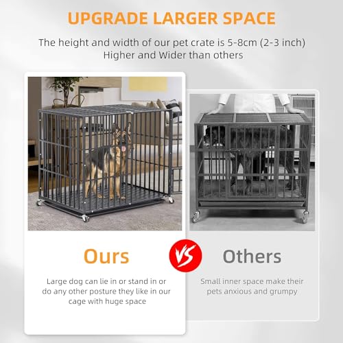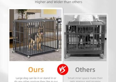- Espace Énorme Amélioré – La hauteur intérieure de notre cage gros chien xxl est de 81cm(38″), 94cm(42″), 96.5cm(46″), sa longueur est de 95cm(38″), 107cm(42″), 117cm(46″), cette parc chien interieur permet au chien de s’allonger confortablement ou se tenir debout sans se cogner sa tête sur le dessus de la caisse, un grand espace de vie permet à vos animaux de compagnie de rester à l’intérieur longtemps sans devenir anxieux