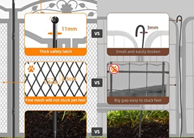• Enclos en Maille Fine – Cet enclos chien grande taille est faite de grille métallique à maille fine, résistant à la rouille et à la corrosion, le chien ne se coince pas ses pieds ou dens dans la grille de notre en enclos, en raison de la structure en maille fine, cet enclos est aussi idéal pour les petits animaux tels que les poulets, les lapins, etc