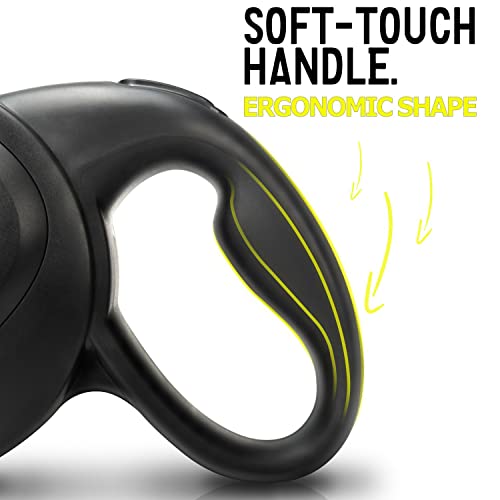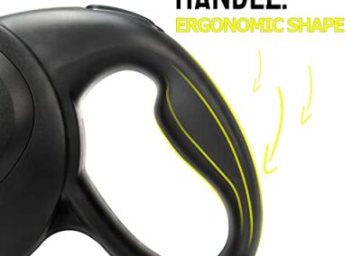 - POIGNÉE ERGONOMIQUE | Utilisable d’une seule main avec bouton de frein Stop pour un blocage continu de la longueur de la laisse par simple pression sur un bouton. Revêtement en caoutchouc antidérapant pour un port confortable.