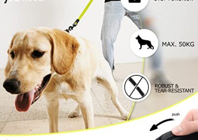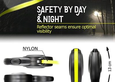 - COURROIE RÉFLEXIVE LUMINEUSE | Laisse de 8 m à tirer. Sois visible même la nuit ! Couleur de signalisation en jaune fluo lumineux. Réfléchissante pour une visibilité optimale lors des promenades nocturnes dans l’obscurité.