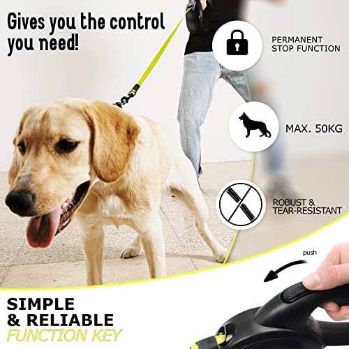 - MATÉRIEL RÉSISTANT | Laisse à enrouleur en nylon résistant. Pour petits & grands chiens jusqu’à 50kg (taille L). Résistant aux morsures & flexible. Grande liberté de mouvement pour ton chien.