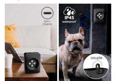 - 🐶【IP45 étanche et rechargeable】 : le port de charge de l’extérieur antiladridos est équipé d’un couvercle, vous pouvez également bien contrôler le chien les jours de pluie. Il peut être accroché à l’arbre, à la clôture, au mur, n’importe où dans la maison. Notre dispositif anti-aboiement prend en charge le chargement via un câble USB. Une charge complète de 5 heures peut fonctionner en continu pendant 30 jours, en veille pendant 60 jours.