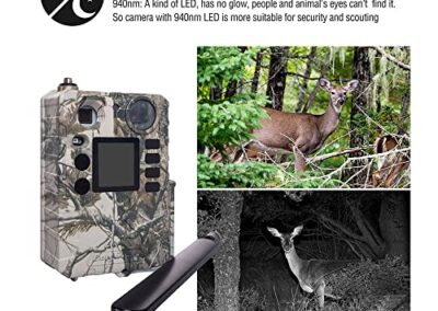 • 【940nm Invisible Infrared Technology]】Avec un filtre infrarouge entièrement automatique, cette caméra de suivi capture des photos des comportements naturels du gibier sauvage en utilisant la technologie d’éclairage flash infrarouge équipée d’une distance de déclenchement jusqu’à 30 m (100 pieds). Vous pouvez obtenir de superbes photos d’un animal qui passe dans l’obscurité totale, sans que l’animal se rende compte que cela est documenté.
