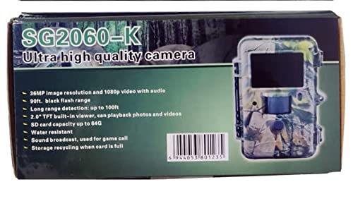 - ◀ Résolution d’image 36MP et vidéo 1080P ▶ Cette caméra SG2060-K Wildlife offre une image HD 36MP et une vidéo 1080P, avec capteur de mouvement de vision nocturne, même le soir, la qualité d’image n’est pas affectée, apportant un plaisir visuel remarquable.