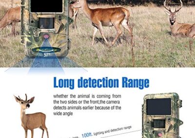 - ◀ Temps de déclenchement rapide 1 s ▶ La vitesse de déclenchement de la caméra de suivi BolyGuard est inférieure à 1 seconde qui permet de capturer tous les moments de chasse merveilleux et passionnants, même la plus petite action de la faune ne sera pas manquée.