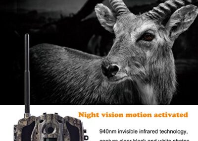 - Technologie infrarouge invisible 940 nm : avec un filtre infrarouge entièrement automatique, cette caméra de trail capture des clichés des comportements naturels du jeu sauvage en utilisant la technologie d’éclairage flash infrarouge. Distance de déclenchement et portée du flash infrarouge jusqu’à 20 m. Vous pouvez obtenir de superbes photos d’un animal qui passe dans l’obscurité totale, sans que l’animal ne se rende compte qu’il est documenté.