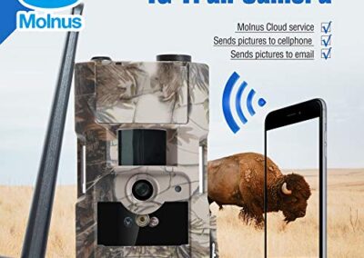 - 【4G】Prise en charge du réseau 4G pour transférer des photos ou des vidéos.Insérez la carte SIM dans l’appareil photo. Lorsqu’un animal est capturé, la caméra enverra des photos et des vidéos à la bo?te aux lettres/au téléphone portable/au compte Molnus en temps réel via le réseau 4G/3G.