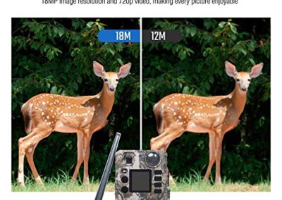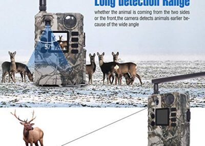 - ◀ 【940nm Invisible Infrared Technology]】Avec un filtre infrarouge entièrement automatique, cette caméra de suivi capture des photos des comportements naturels du gibier sauvage en utilisant la technologie d’éclairage flash infrarouge équipée d’une distance de déclenchement jusqu’à 30 m (100 pieds). Vous pouvez obtenir de superbes photos d’un animal qui passe dans l’obscurité totale, sans que l’animal se rende compte que cela est documenté.
