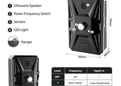 - 🐕【3 niveaux de fonctionnement】Le dispositif anti-aboiement pour chien à fréquence réglable convient à différents chiens. 15KHZ-30KHZ s’applique aux gros chiens méchants. 20KHZ s’applique au chien docile. 30KHZ s’applique aux petits chiens. Il est recommandé pour les chiens âgés de 6 mois à 8 ans.